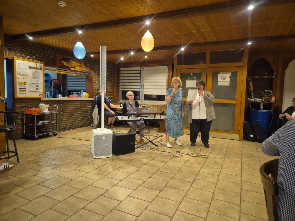 Nach einer einstündigen Fahrt wurde den Musikern ein herzlicher Empfang beschert. Schnell war alles aufgebaut und um ca. 11.00 Uhr ging es dann endlich los. Mit einem bunten Programm an Liedern, kleinen Anekdoten und auch Gesang, unterhielten wir alle anwesenden Gäste. Man konnte sehen, dass diese das dort angebotene Essen richtig genossen.