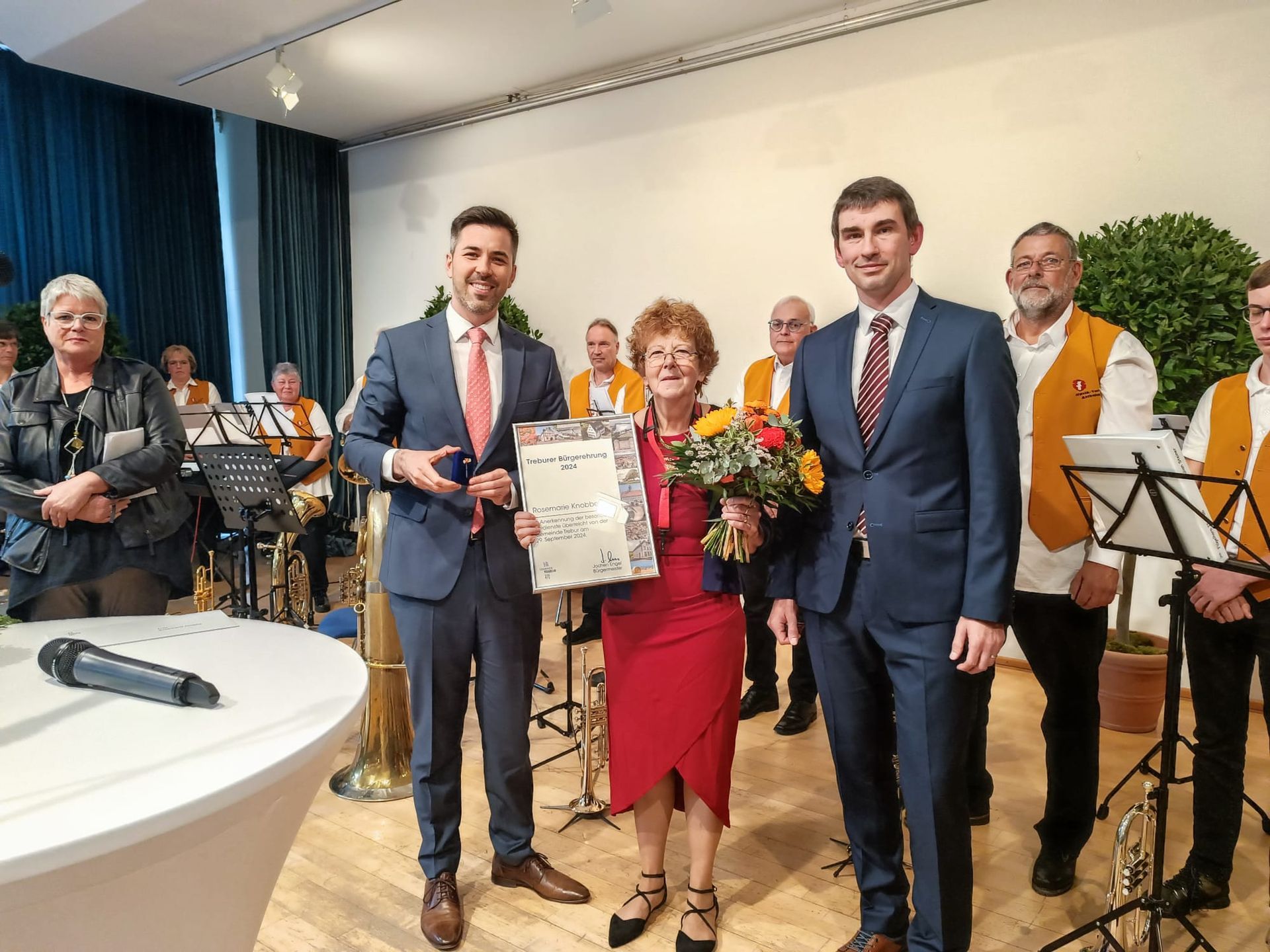 Dies hatte einen besonderen Grund, denn in diesem Jahr wurde eine von uns für ihr soziales Engagement in der Gemeinde Trebur ausgezeichnet. Die Rede ist von unserer Vereinsvorsitzenden - oder wie sie von den Musikanten liebevoll genannt wird, Präsidentin, Fr. Rosemarie Knobbe.